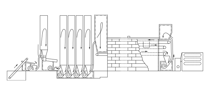 В чайной печи происходит лёгкая просушка. Чайная печь сделана из жароустойчивых кирпичей. Внутри она разделена на три отсека. Чайные листья перемещаются в ней с нижнего отдела в верхний, а затем в средний отдел.