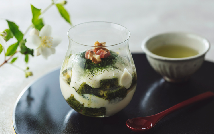 Молоко с сахаром подогревается в кастрюле почти до температуры кипения, добавляется растворённый Матча в горячей воде, замоченный в воде желатин, перемешивается и затем остужается. Заливается в формочку и помещается в холодильник для заморозки. Далее достают из формы и перекладывают в ёмкость, сверху кладут варёные красные бобы, подслащённый готовый каштан, чёрный мёд.