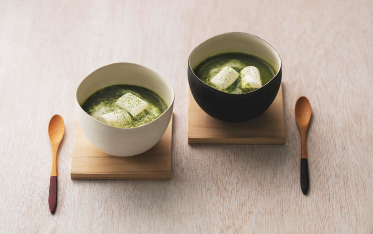 Матча растворяется в стакане небольшим количеством горячей воды. Помешивая молоко, бобовую муку и чёрный сахар в кастрюле всё это подогревается, затем наливают в стакан и посыпают Матча.